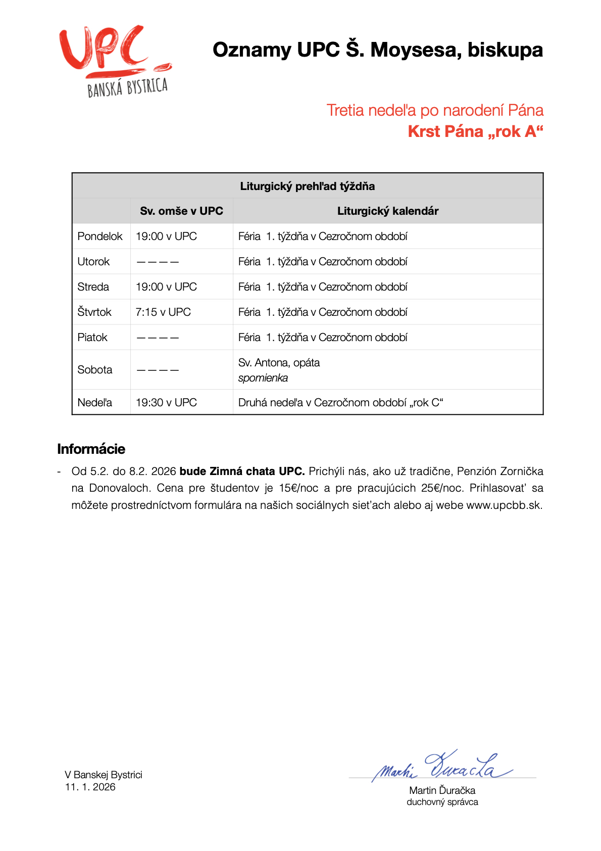 Liturgické oznamy